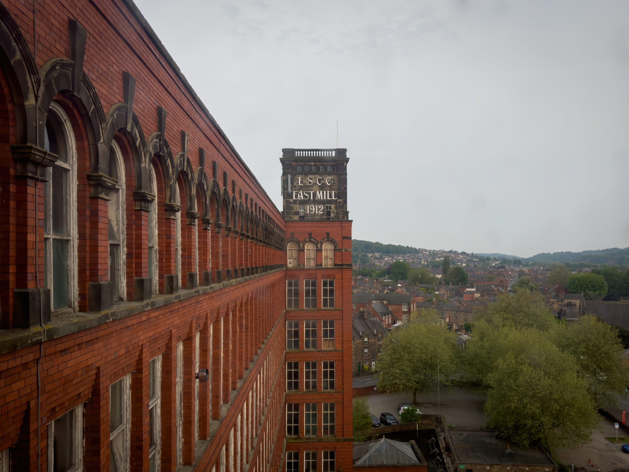 It is built around a steel frame, which by 1912 had long been entirely free-standing; unlike William Strutt’s structures, which relied on the walls of the building to support them. No scaffolding was used to build the East Mill. Despite this, there were few accidents during construction. The only death recorded in the press was of labourer Edward Frost of Bonsall, struck by lightning whilst inserting a steel girder in the ground just a week into the project.