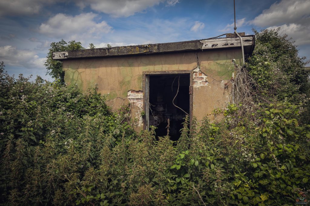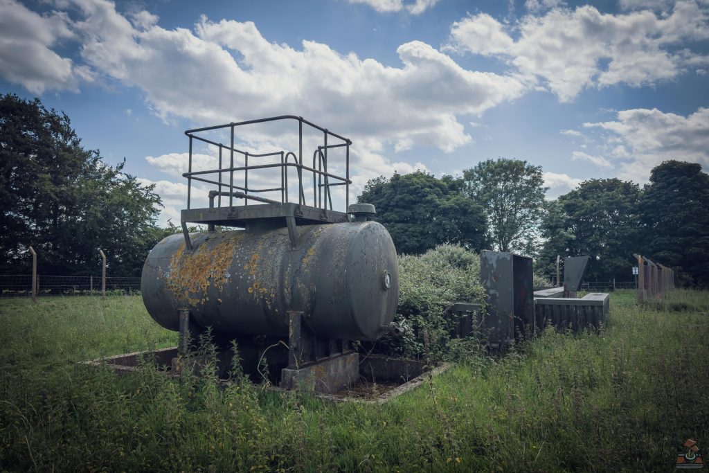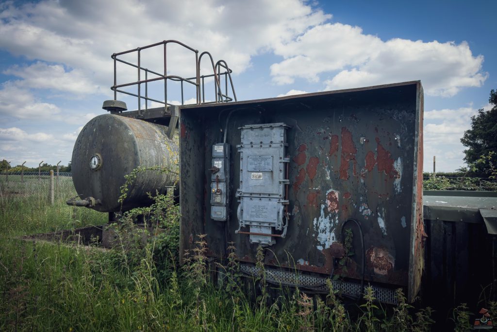 The site also contains two pump houses that were originally used for aviation fuel distribution. These housed fuel pumps and were connected to underground storage tanks and pipelines that supplied aircraft refuelling points across the base. An emergency water supply tank for firefighting also sits just outside the installation.